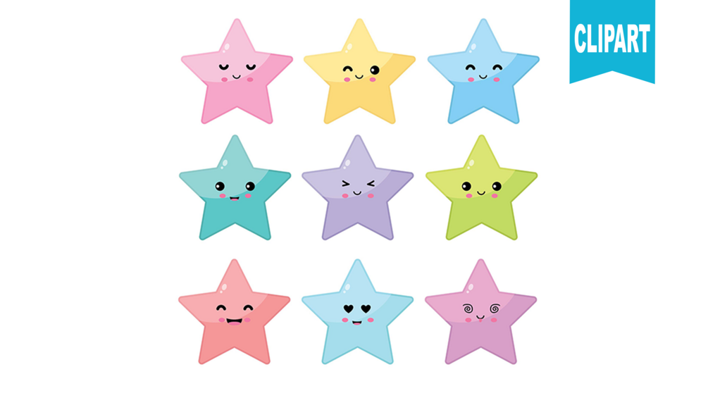 Kawaii colorful star clipart - PNG file, instant download